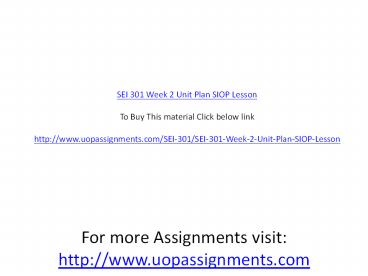 SEI 301 Week 2 Unit Plan SIOP Lesson PowerPoint PPT Presentation