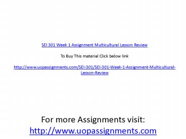 SEI 301 Week 1 Assignment Multicultural Lesson Review PowerPoint PPT Presentation