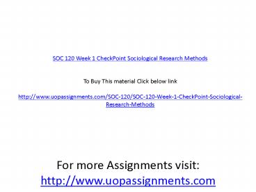 SOC 120 Week 1 CheckPoint Sociological Research Methods PowerPoint PPT Presentation