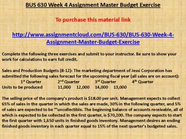 Title: BUS 630 Week 4 Assignment Master Budget Exercise