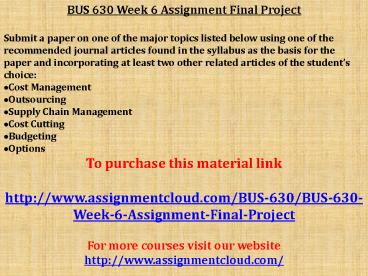 BUS 630 Week 6 Assignment Final Project PowerPoint PPT Presentation