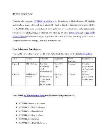 JEE Main Sample Paper PowerPoint PPT Presentation