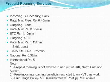Prepaid Roaming Services PowerPoint PPT Presentation