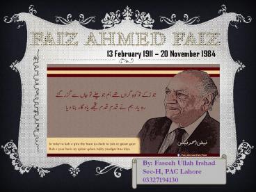 Faiz Ahmed Faiz by faseehullah Irshad PowerPoint PPT Presentation