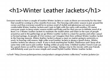 always a good choice. Winter Leather Jackets are