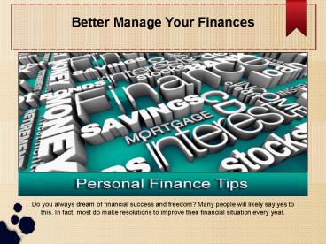Better Manage Your Finances