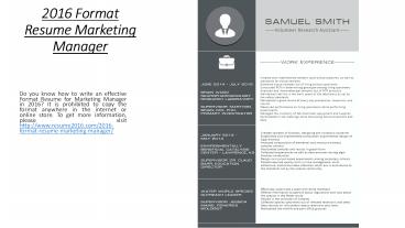 2016 Format Resume Marketing Manager PowerPoint PPT Presentation