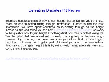 Defeating Diabetes Kit Review PowerPoint PPT Presentation