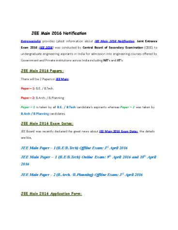 Tags JEE Main, JEE Main 2016, JEE Main 2016