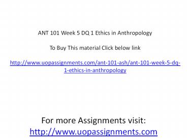 ANT 101 Week 5 DQ 1 Ethics in Anthropology PowerPoint PPT Presentation