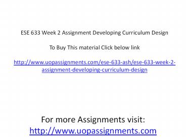 ESE 633 Week 2 Assignment Developing Curriculum Design PowerPoint PPT Presentation