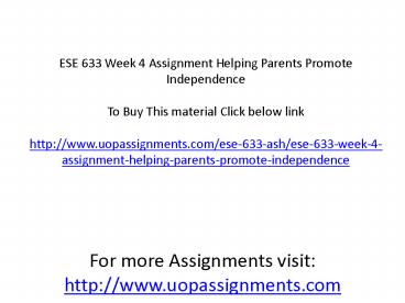 ESE 633 Week 4 Assignment Helping Parents Promote Independence PowerPoint PPT Presentation