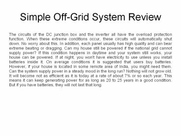 • However Simple Off-Grid System Review remember