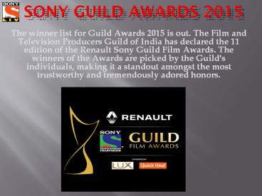 Watch Renault Sony Guild Film Awards Online - SonyLiv PowerPoint PPT Presentation