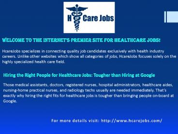 For more details visit http//www.hcarejobs.com/