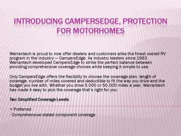 Introducing CampersEdge, Protection For Motorhomes PowerPoint PPT Presentation