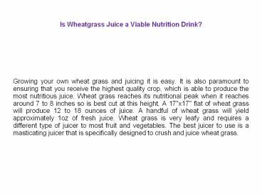 Is Wheatgrass Juice a Viable Nutrition Drink? PowerPoint PPT Presentation
