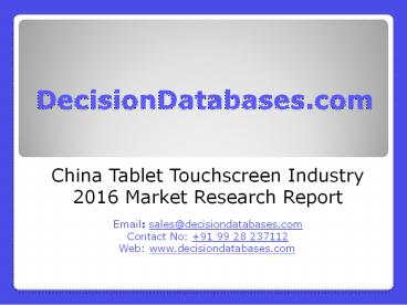 Tablet Touchscreen Market Analysis 2016 Development Trends PowerPoint PPT Presentation