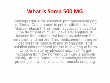 disorder, utilization Soma with a few alerts. - Avoid driving the vehicles, as it causes an