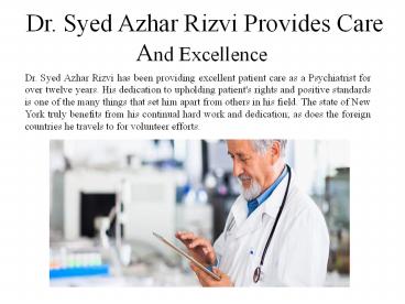 Title: Dr. Syed Azhar Rizvi Provides Care And Excellence