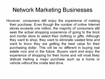 Network Marketing Businesses