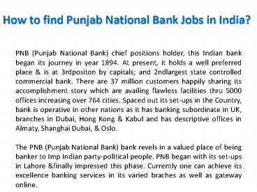Title: How to find Punjab National Bank Jobs in India?