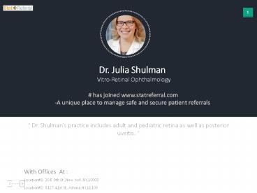 Dr Julia Shulman, Vitro-Retinal Ophthalmology joined in statreferral. PowerPoint PPT Presentation