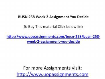 BUSN 258 Week 2 Assignment You Decide PowerPoint PPT Presentation