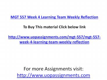 MGT 557 Week 4 Learning Team Weekly Reflection PowerPoint PPT Presentation