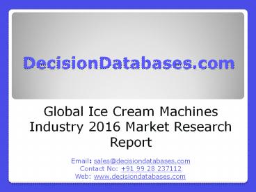 Global Ice Cream Machines Industry: Market research, Company Assessment and Industry Analysis 2016 PowerPoint PPT Presentation