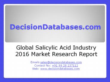Global Salicylic Acid Market 2016:Industry Trends and Analysis PowerPoint PPT Presentation