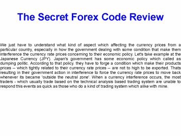 1The Secret Forex Code Review