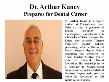 2Dr. Arthur Kanev Combined Career Dental with