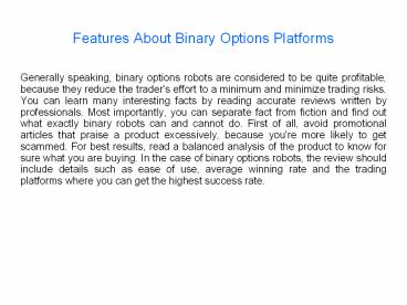 The Reasons Why Should You Read Binary Options PowerPoint PPT Presentation