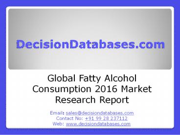 Fatty Alcohol Market Analysis 2016 Development Trends PowerPoint PPT Presentation