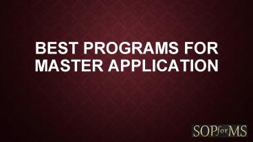 Title: Best Programs for Master Application