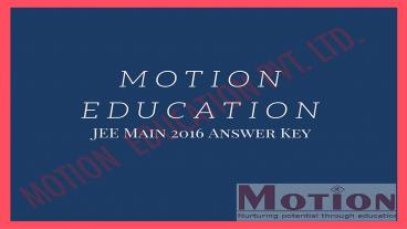 JEE Main 2016 Solutions, JEE Main 2016 Answer Key PowerPoint PPT Presentation