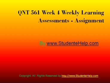 Title: QNT 561 Week 4 Weekly Learning Assessments