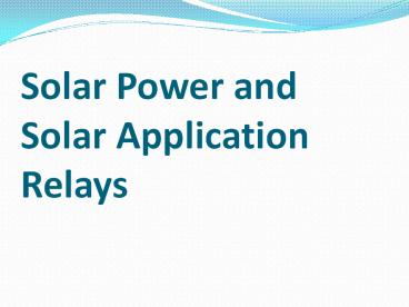 Solar Power Relays PowerPoint PPT Presentation