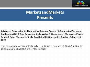 Title: Advanced Process Control Market by Application (Oil & Gas, Petrochemicals) Forecast 2020
