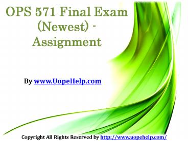 Title: OPS 571 Final Exam (Newest) - Assignment