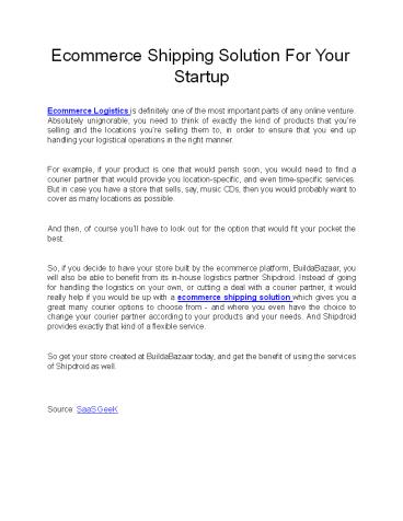 Ecommerce Shipping Solution For Your Startup PowerPoint PPT Presentation
