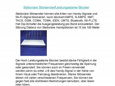• Stationäre Störsender können alle Arten von