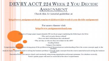 DEVRY ACCT 224 Week 2 You Decide Assignment PowerPoint PPT Presentation