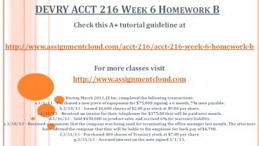DEVRY ACCT 216 Week 6 Homework B PowerPoint PPT Presentation