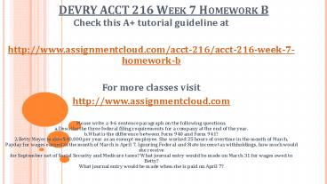 DEVRY ACCT 216 Week 7 Homework B PowerPoint PPT Presentation