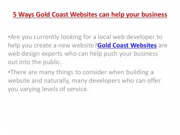 5 Ways Gold Coast Websites can help your business PowerPoint PPT Presentation