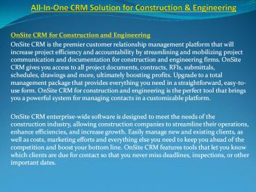 Title: All-In-One CRM Solution for Construction & Engineering