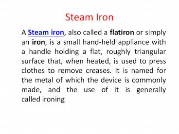 • A Steam iron, also called a flatiron or simply