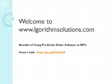 Benefits of Using Predictive Dialer Software in BPO PowerPoint PPT Presentation